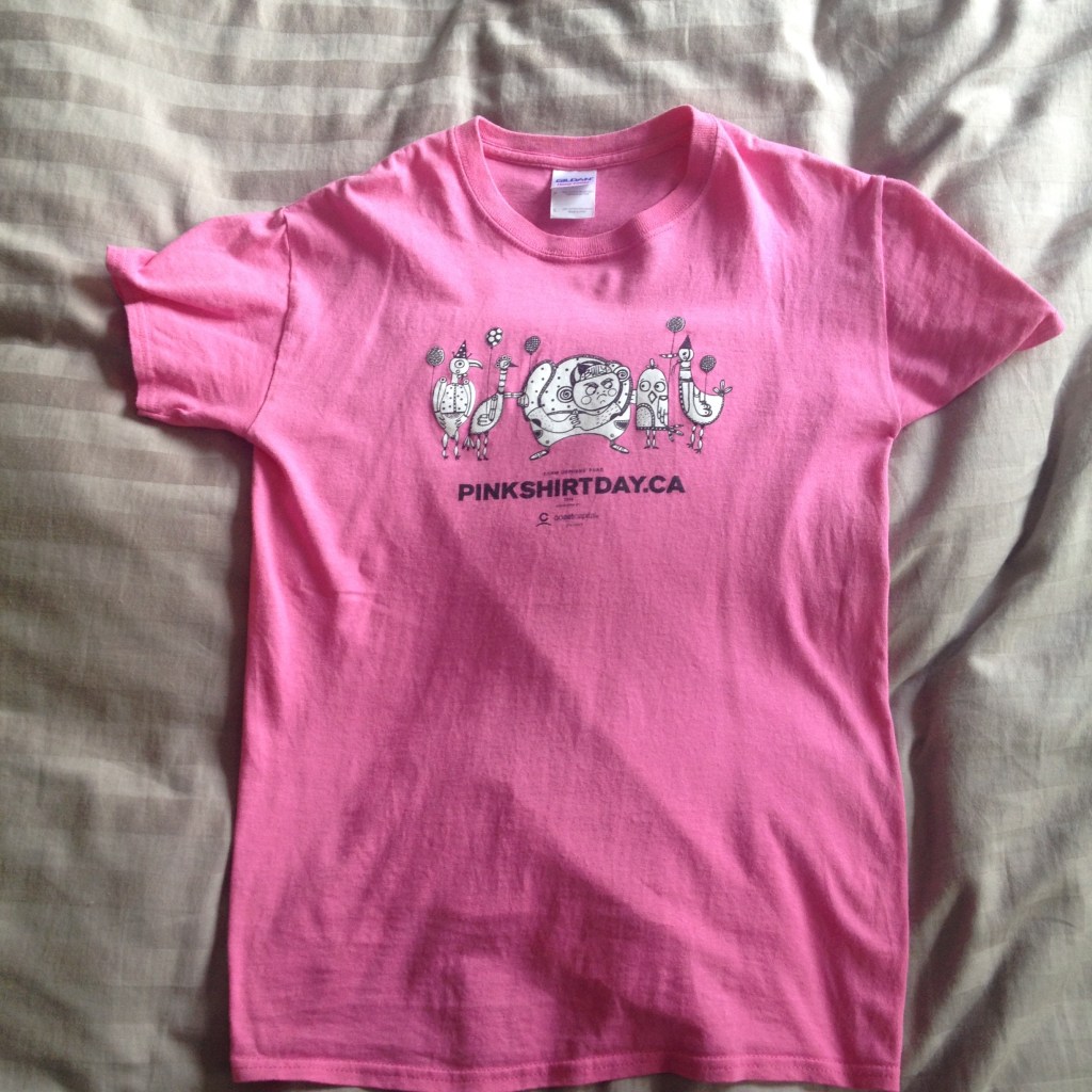 Pink-shirt day originated in Nova Scotia when a gay high school teen was bullied because he wore the colour pink to school. In response, his friends encouraged their friends to all wear pink the following day in an act of solidarity, through protesting bullying.